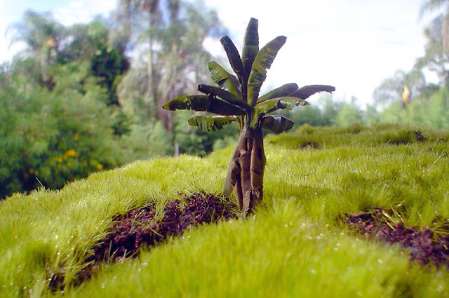 Esta maquete foi toda feita a mão, incluindo esta minúscula locomotiva.